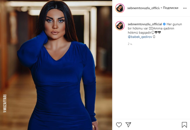 Müğənni Şəbnəm Tovuzludan xəbər var.dogruxeber.tv bildirir ki, Şəbnəm sosial media hesabında yeni fotosunu paylaşıb. O, fotoya: "Hər günün bir hökmü var. Amma qadının hökmü başqadır" sözlərini yazıb .Həmin fotonu təqdim edirik:
