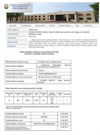 Qeyd edək ki, açıqlanan məlumatda “Tikintinin istismara hazırlıq aktı”nın 2020-ci ilin aprel ayında verildiyi göstərilir.
