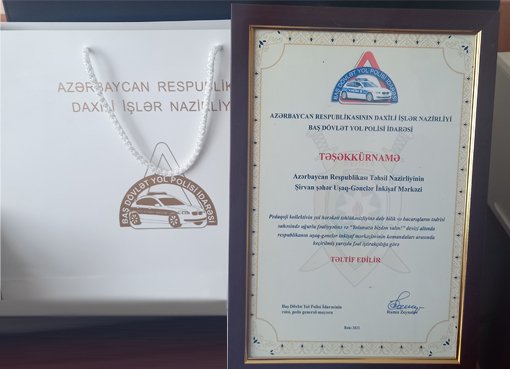 Bugünlərdə Şirvan şəhər Uşaq-Gənclər İnkişaf Mərkəzinin komandası “Yolunuzu bizdən salın!” devizi altında Respublika üzrə keçirilən onlayn yarışlarda iştirak ediblər. Tədris müddətində yol hərəkəti qaydaları və təhlükəsizliyi barədə qazandıqları bilik və bacarıqları yüksək aktivliklə nümayiş etdirən şagirdlər, yarışlarda göstərdikləri fəal iştiraka görə DİN-in Baş Dövlət Yol Polisi İdarəsinin rəisi, polis general-mayoru Ramiz Zeynalov tərəfindən təşəkkürnamə ilə təltif olunublar.