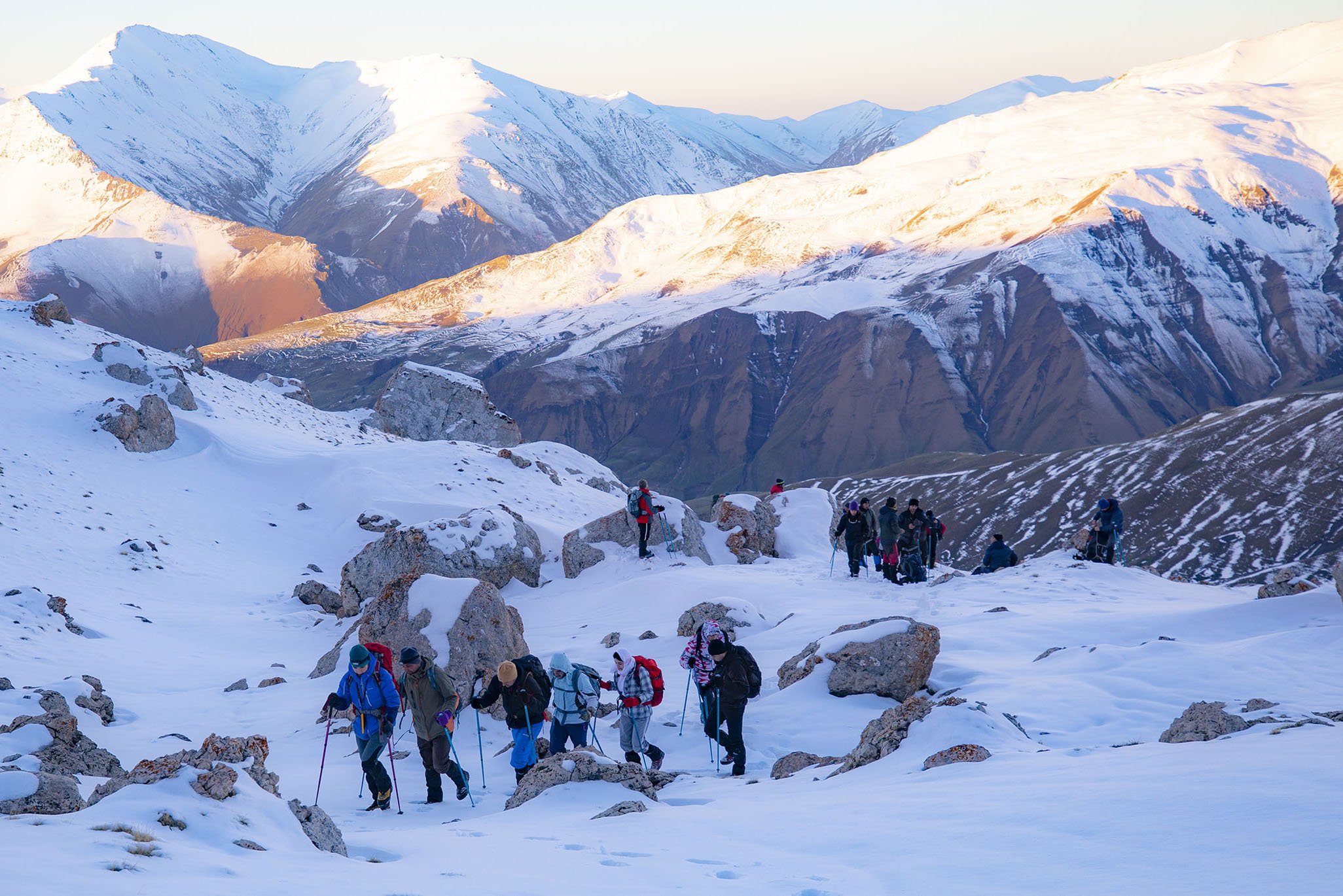 Azərbaycanın ən yüksək yaşayış məntəqələrindən biri olan Xınalıq kəndindən başlayan alpiniadanın iştirakçıları Qızıl Qaya massivinin ətəklərində düşərgə salaraq,