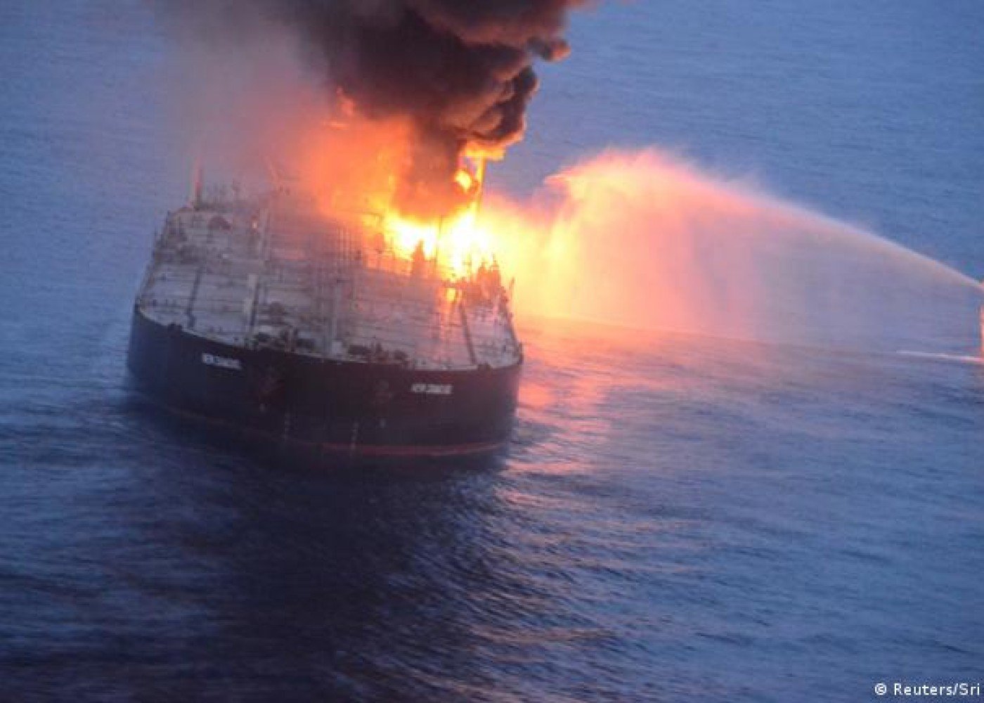 Yəmən sahilləri yaxınlığında vurulan gəminin yük çənlərindən birində yanğın baş verib və onu söndürmək üçün yanğınsöndürmə avadanlıqlarından istifadə edilib.