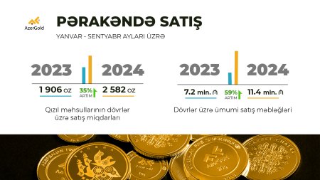 "AzerGold"dan "dogruxeber.tv"a verilən məlumata görə, Səhmdar Cəmiyyəti tərəfindən 2025-ci ilin yanvar-may ayları ərzində 3698 unsiya qızıl, 8827 unsiya gümüşün yerli bazarda topdan və pərakəndə satışı həyata keçirilib. Bu ötən illə müqayisədə qızılın satışında 171% artım deməkdir. Gümüş məhsullarının satışında isə 17% artıma nail olunub.