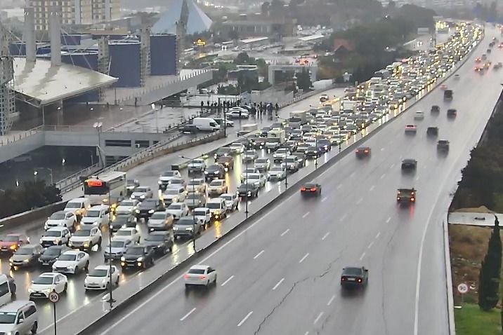 Yağışlı Bakının tıxaclı yolları – SİYAHI