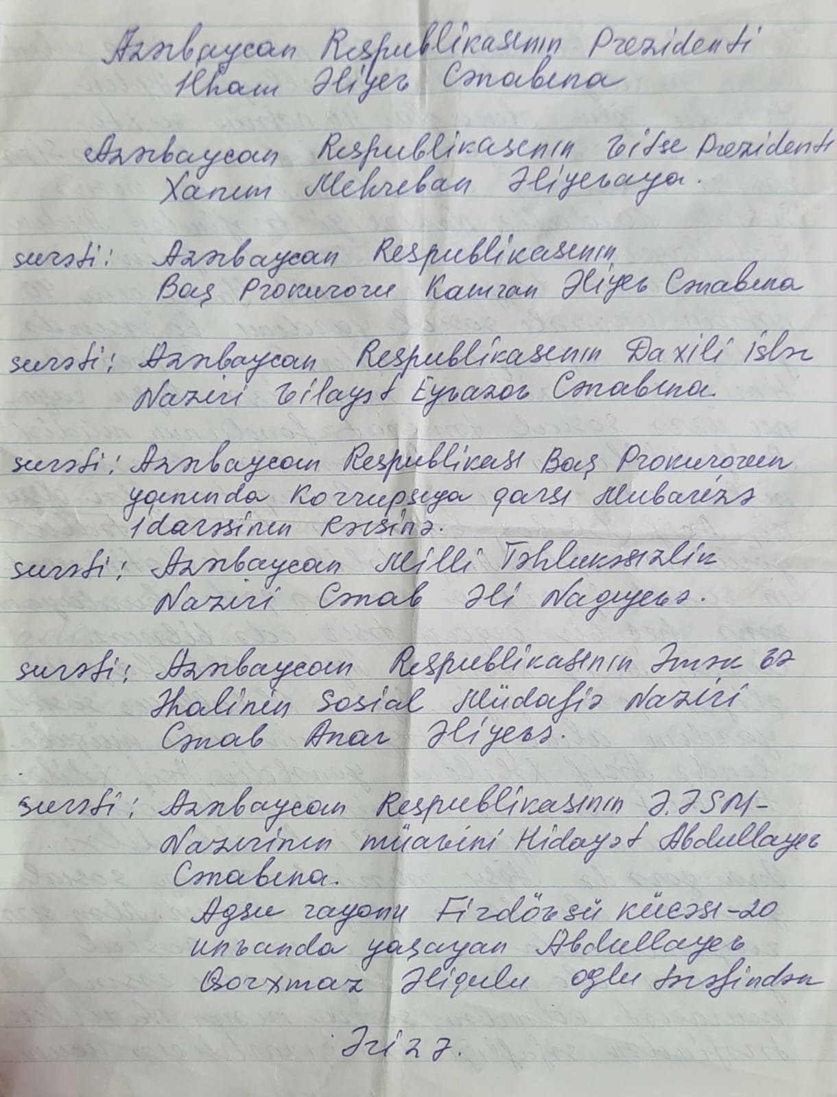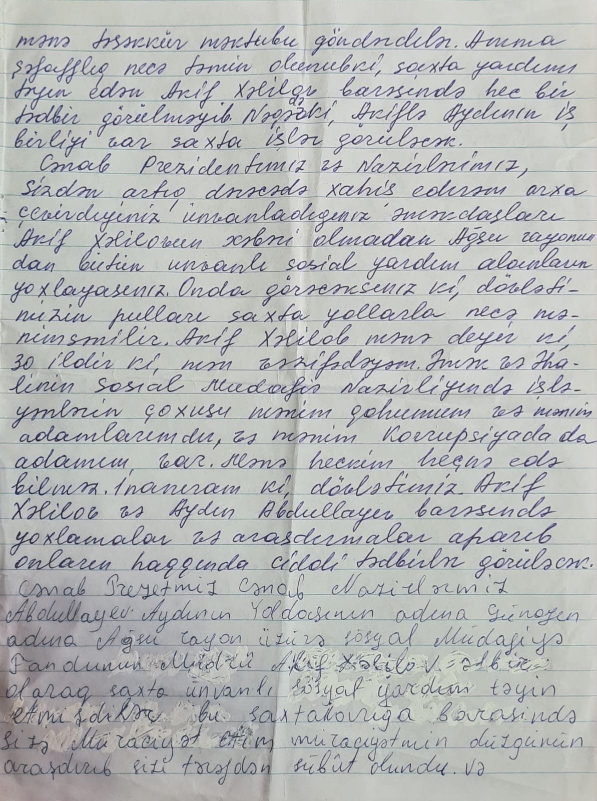 Müraciətdə diqqət çəkən əsas məqamlardan biri konkret faktın təqdim olunmasıdır. Qorxmaz Abdullayev öz iddiasını əsaslandırmaq üçün Abdullayev Aydın Əliqulu oğlunun həyat yoldaşı – Abdullayeva Günay Şərif qızı ilə bağlı sənədləri təqdim edib. Onun bildirdiyinə görə, bu ailəyə də ünvanlı sosial yardım təyin olunub, lakin sonradan məsələ ilə bağlı etdiyi müraciətlər əsasında aparılan araşdırma nəticəsində müəyyən nöqsanlar üzə çıxıb.